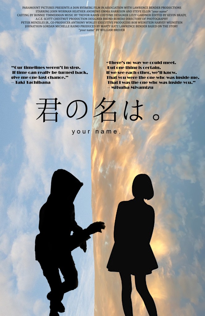 we finalized our design from our rough draft. I added some movie credits pngs and typography,adding the subjects that I took pictures of.