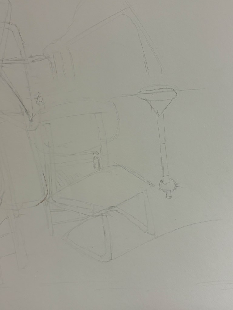 I really did try my best on this one. I kept measuring everything, but my perspective still ended up off, and I restarted a few times out of frustration. Even though it wasn’t perfect, this assignment helped me see how drawing a “blueprint” first actually makes a difference. I’m starting to understand perspective and space a lot more now.